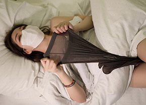 [ROSI写真]口罩系列NO.757_美女床上撩裙露粉色丁字裤诱惑写真